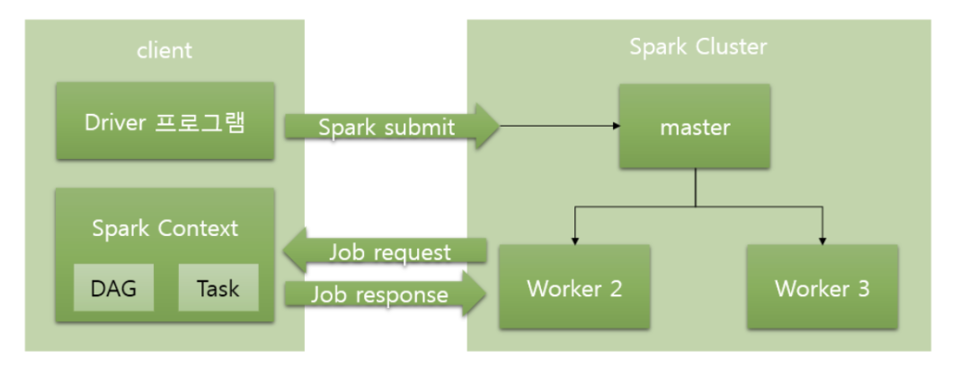 - driver가 클러스터 외부에 있는 형태