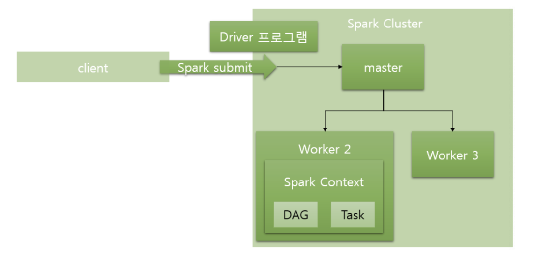 - 장점: 드라이버 프로그램이 클러스터의 노드에서 실행되므로 네트워크 지연이 적고, 클러스터 리소스를 더 잘 활용할 수 있다.